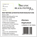 Mothers Fresh Foods Organic Black Pepper Powder is made with the finest and best-selected black peppers. It makes a great alternative for the whole spice. This finely ground pepper powder is highly aromatic. It adds a superb flavour and bites to any dish. It works as a great flavour enhancer. The pepper powder is high in antioxidants and has anti-inflammatory properties. It can be added to pies, creamy shrimp, scallop sauces, mayonnaise and cream-based soups.