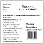 Mothers Fresh Foods Organic Cumin Whole is made with the finest best selected cumin seeds. It is a staple pantry ingredient in many cuisines. This spice works well with any dish. It is pure and has a burst of flavour. It is easy to use and adds a great flavour to any dish. Jeera is also known to have digestive properties. It is a great flavour enhancer. It does not contain any added flavour, preservatives, colour, etc.