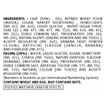Cake (80%) : Egg, Refined Wheat Flour (Maida), Sugar, Bakery Shortening, Humectants (Ins 422, Ins 420), Liquid Glucose, Invert Sugar Syrup, Cake Gel ( Ins 471, Ins 477, Ins 1520, Ins 420, Ins 412, Ins 202), Edible Common Salt, Preservatives (Ins 282, Ins 200), Raising Agents (Baking Powder And Ins 500(Ii) ), Acidity Regulator (Ins 260), Banana Fruit Powder (0.06%), Artificial Flavour (Vanilla, Banana) And Stabilizer (Ins 415). Filling (20%): Water, Liquid Glucose, Sugar, Humectant (Ins 422), Starch (Ins 1442), Nature-Identical Flavour (Banana), Emulsifier (Ins 460), Preservative (Ins 202), Edible Common Salt, Artificial Colour (Ins 171, Ins 102, Ins 110), Natural Colour [Ins 150(D)] And Acidity Regulator (Ins 330). (Numbers In Brackets As Per International Numbering System). Contains Wheat And Egg. May Contains Nuts. Polyols May Have Laxative Effects.