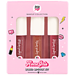 Homegirls - Liquid Lipstick Kit, this dreamy set of 3 liquid lipsticks is the perfect brady bunch your vanity needs. Don’t let anyone call you basic because these lippies will have you #ServingLewks on the daily! In stunning shades of dusty rose, brown nude and peachy pink, these lippies are gonna be a superstar on that Instagram grid, so brace yourself for those double taps. These liquid lippies are a ‘must-have’ for your vanity kit. With just one swipe of this intensely pigmented, super lightweight liquid lipstick, you’re all set for kiss-ready lips. Stays put all day, seriously! Girl, get ready for that picture-perfect pout. No smudge. No transfer. No bleeding. Enriched with Cocoa Butter and Vitamin E, this non-drying formula glides smoothly and hugs your lips while offering some serious hydration. Add an extra dose of oomph with these lippies & channel your inner diva.