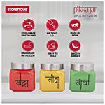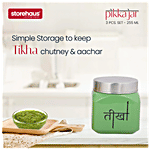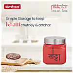 Storehaus Pickle Jar Set - Glass with Metallic Lid quality glass which makes it highly durable and long-lasting. It is designed for long-term storage and is stackable which makes it easy to store without consuming much space. It is sturdy, hygienic, food-safe and scratch-resistant. Ideal to store several items like honey, jams, pickles, chocolates, etc.