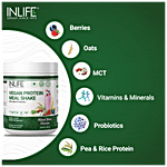 INLIFE Vegan Meal Replacement Shake is a complete vegan and vegetarian-friendly, meal on the go for those with little or no time for breakfast, lunch, or dinner. A perfect way to supplement your daily diet and nutrition needs. This product includes berries that are a rich source of Antioxidants, Oats a rich source of fibre and comes with added probiotics to support your gut health. A perfect blend of Pea Protein Concentrate, Rice Protein Concentrate and Oats powder has an exceptionally good PDCAA score. It provides Protein, Carbohydrates & Fat in a balanced ratio of 2:3:1.