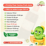 Aagam Prickly Pear Cactus Fruit Juice, with No Added Sugar, is a premium choice for better health. This Aagam Prickly Pear Cactus Fruit Juice comes with no added sugar and makes for the ideal choice for your family's health. This Juice comes with all-natural flavours and colours and it helps in keeping a check of Hb levels in the blood. Enjoy a dose of 50 ml of this juice in the morning and evening for best results. The prickly pear cactus, also known as nopal, is often endorsed as a treatment for diabetes, high cholesterol, obesity, and hangovers. It's also regarded for its antiviral and anti-inflammatory properties. Explore a wide range of Aagam products and supplements only on Big Basket.