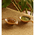 Exclusive Lane presents a ceramic made set of two bowls that can be used to serve various dips and sauces. The set of these bowls is microwave and dishwasher friendly. It is Glazed in dual shades of mustard yellow & white. The exterior and insides of each, are hand-glazed to perfection in a gold-dust mustard glaze, becoming an ombre on the rim in a translucent cosmic-milky glaze, like the forever play of the Sun and Moon at the brink of dusk. ‘Two Dips of Starlight’ is handmade with love by Alam, a Studio Potter, to bring the mystic sparkle of the galactic universe to your favourite kitchen and table spaces.