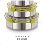 Magnus Klip Lock Stainless Steel Containers are made from high-quality stainless-steel food grade material. The container is BPA free and made from non-toxic and chemical free materials. The container comes with a leak-proof design and provides you with non-messy carrying experience.