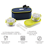 Magnus Klip Lock Avanza Stainless Steel & Plastic Container With Spoon & Fork - Food Grade, Leakproof Design, 3122rd, 3 pcs (300 ml + 300 ml + 50 ml)
