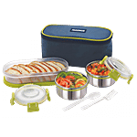 No Question askedMagnus Klip Lock Avanza Stainless Steel & Plastic Container With Spoon & Fork - Food Grade, Leakproof Design, 3122rd