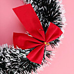 Urban Fest Snow White Plastic Christmas Wreath With Tied Ribbons - White & Green, 1 pc