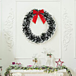 Urban Fest Snow White Plastic Christmas Wreath With Tied Ribbons - White & Green