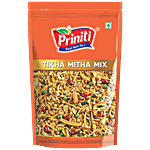 Priniti Tikha Mitha Mix will never let you down and makes for a premium, tea-time snack, wherever you are. This bag of flavour will give you the taste of sweetness but also hits you with spice and tanginess making it hard to resist. Priniti Tikha Mitha Mix is made with a combination of rice flakes, pulses, peanuts, lentils and flavourful spices. This is a lip-smacking delicious snack for those who prefer a blend of flavours with their chai or just for snacks. Serve this Tikha Mitha Mix to guests or carry it to work for snacking and keeping your hunger pangs away. Explore the wide range of crunchy and delicious snacking options From Priniti including varieties like bhujia, khatta meetha, navratan mix and more, only on Big basket.