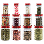 MTL Checkered Airtight Jar Set - Durable, Red Lid, 12 pcs
