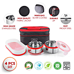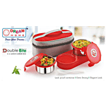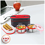 Dream Home Stainless Steel Lunch Box - With Spoon, Red, Designer, 350 ml (Set of 3)