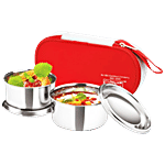 Dream Home All Steel Lunch Box - Spoon, Designer, Brown, With Bag, 350 ml (Set of 2)