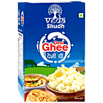 Veda Shudh Deshi Ghee is more than just clarified butter; it is your kitchen's aromatic and flavoursome best friend. Forget cooking in unhealthy refined cooking oil and butter and shift to asli ghee which helps with better digestion and gives you the energy boost to start the day. Our pure ghee made from clarifying 100% organic butter from cows is exactly like homemade ghee in its taste and flavour. Veda never compromises on the quality, purity, and taste of our ghee. Ghee is not simply an addition to your diet but also helps for a balanced and active lifestyle. A spoonful of Desi Ghee consumed on empty stomach every day in the morning can help relieve dryness, and regular consumption can help reduce cholesterol, improve the heart's functioning, and reduce joint pain.