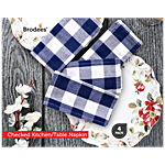 Brodees Cotton Kitchen/Table Napkin - Blue, Checked, 45 x 45 Cm, Easy Clean, 4 pcs