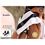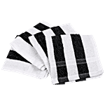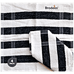 Brodees Cotton Face Towel - White/Black, Stripe, 27 x 27 Cm, Fluffy, Super Soft, 4 pcs