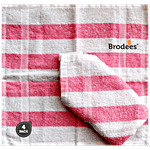 Brodees Cotton Face Towel - White/Pink, Stripe, 27 x 27 Cm, Fluffy, Super Soft, 4 pcs