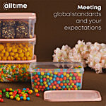 All Time Plastic Polka Containers With Lid - Pink, Multipurpose, Air-Tight, Food Grade, 1 L (Set of 4)