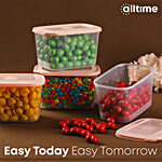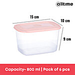 All Time Plastic Food Saver Containers With Lid - Pink, Food Grade, Air-Tight, 800 ml (Set of 6)