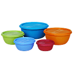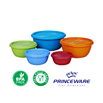 Princeware Storage Containers - Plastic, Assorted Colours, Store Fresh, Microwave Safe, 5 pcs (2.6 L, 1.6 L, 900 ml, 525 ml, 296 ml)