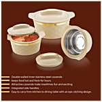 Modware Kohenoor Insulated Inner Stainless Steel Casserole Set - Gold, 3 pcs (500 ml + 1 L + 2 L)