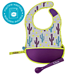Bbox Travel Bib & Flexible Soft Bite Spoon Set - Cactus Capers Purple Grey, 1 pc