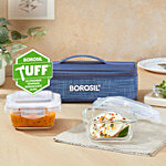 No Question askedBorosil Indigo Horizontal Glass Lunch/Tiffin Box - Microwave Safe, Leak Proof, Transparent