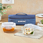 Borosil Indigo Horizontal Glass Lunch/Tiffin Box - Microwave Safe, Leak Proof, Transparent, 320 ml (Set of 2)