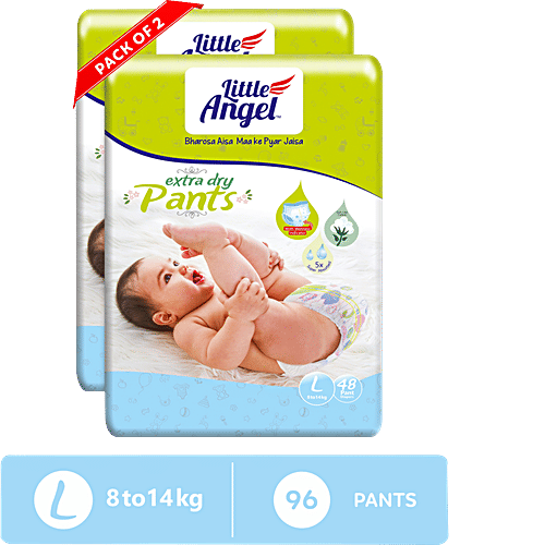 Little Angel Extra Dry Pants Baby Diapers - With Wetness Indicator, Large, Up To 8-14 kg, 48 pcs (Pack of 2)
