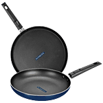 Bergner Orchid Non-stick Cookware Set consists of Tawa and Fry pan. It is made with heavy gauge pressurised aluminium, which helps in the even distribution of heat. It is an ideal cookware for any kitchen. It is easy to clean and wash and is long-lasting. This cookware is used for preparing and cooking food or stylishly serving food. It doesn't burn food and retains essential minerals in food. Tawa is used to make chapatti, roti, paratha, etc. A Fry pan is used for frying, searing and browning foods. All three have a comfortable handle which makes them easy to carry and handle. It is compatible with both gas stoves as well as induction.