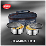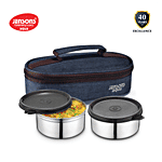 Jensons Aqua Lunch Box is made of high-quality stainless steel. It is durable and long-lasting as it is made of stainless steel. It is made with anti-bacterial, non-porous steel. It has air-tight, leak-proof containers. The containers have a bag so that it can be easily carried.