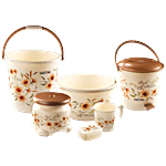 Nayasa Bathroom Set Small Dlx Bucket 18 Ltr, Mug 1.5 Ltr Dustbin, Stool, Soap Case, Tub, Design, Brown/Cream