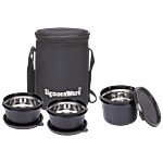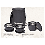 Signoraware Monarch Executive Medium Microsafe Lunch Box With Bag - Leak Proof, Black, 4 pcs