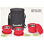 Signoraware Monarch Executive Medium Microsafe Lunch Box With Bag - Leak Proof, Red, 4 pcs