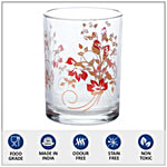 Yera Glass Tumbler - Straight, Square, Printed Design, 210 ml (Set of 6)