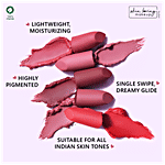 Matte’s not all! Soft-touch, single-swipe application with a dreamy glide—this highly pigmented lipstick will leave you with a finish that's truly (matte) terrific! It's carefully formulated to be lightweight, non-drying and moisturizing with a touch of Shea Butter, Almond Oil, Jojoba Oil, Macadamia Nut Oil, Avocado Oil & Vitamin E. It's also free from known toxins like talc, parabens and phthalates and is 100% vegan & cruelty-free as always! Pick your faves from a palette of matterrific shades, handpicked to suit all Indian skin tones <3