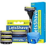 LetsShave Pro 5 Razor Shaving Kit For Men - 5 Blade Shaving Razor, 3 pcs (Razor + Travel Cap + 4 Cartridges)