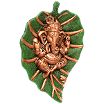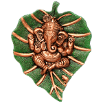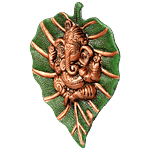 eCraftIndia Brown Lord Ganesha On Green Leaf Wall Hanging, 1 pc