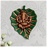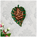eCraftIndia Brown Lord Ganesha On Green Leaf Wall Hanging