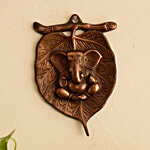 eCraftIndia Metal Wall Hanging Of Lord Ganesha On Leaf, 1 pc