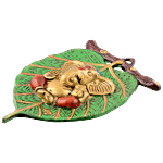 eCraftIndia Lord Ganesha In Red Dhoti On Green Leaf Wall Hanging, 1 pc