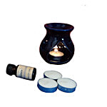 eCraftIndia Blue Aroma Burner Set With Lavender Aroma Oil & 4 Tea Light Candles