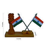 eCraftIndia Wooden Ashoka Pillar With 2 National Flags, 1 pc