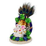 No Question askedeCraftIndia Lord Ganesha Idol On Decorative Handcrafted Floral Plate With Peacock Feather For Home & Car
