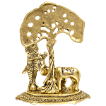 No Question askedeCraftIndia Lord Krishna Playing Flute Under Tree With Golden Cow & Calf Showpiece
