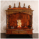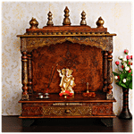 eCraftIndia Brown Mango Wood Multicolour Pooja Temple/Mandir With Storage Option