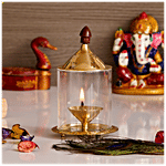 No Question askedeCraftIndia Brass Akhand Diya With Glass