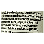 Sugar, Glucose Syrup, Maize Starch, Fruit Juice Concentrates (Pineapple, Orange, Apple), Natural Flavourings, Acids (Citric Acid, Fumaric Acid), Concentrates From (Carrot, Pumpkin, Spirulina, Radish, Apple, Black Current, Hibiscus), Glazing Agent (Shellac, Carnauba Wax, Beeswax), Acidity Regulator (Trisodium Citrate), Caramelized Sugar, Salt, Coconut Oil. The Mixture May Vary.