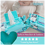 Kiddicare Pure Water Baby Wipes - Ultra Thick, Soft, Paraben Free, 72 pcs