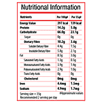 Nutrition_per: 100g Serving_Size: 35g Energy Value: 397 kcal Protein: 14.2g Carbohydrate: 66.0g Sugar: 0g Dietary Fibre: 10.2g Soluble Dietary Fibre: 4.4g Insoluble Dietary Fibre: 5.8g Fat: 8.5g Saturated Fatty Acids: 1.3g Monounsatured Fatty Acids: 3.9g Polyunsaturated Fatty Acids: 2.9g Trans Fatty Acids: 0g Cholesterol: 0mg Iron: 4.4mg Sodium: 4.9mg